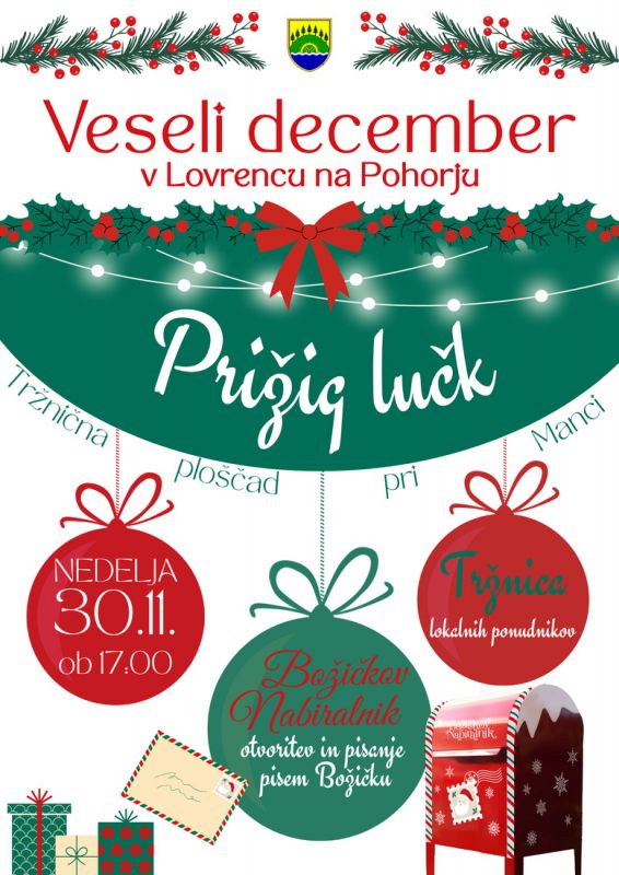 Vabimo vas, da se nam pridružite na prazničnem prižigu lučk, kjer bomo uradno otvorili tudi Božičkov nabiralnik. Najmlajši bodo na dogodku lahko pisali pisma Božičku in jih oddali v prav posebni nabiralnik s Severnega pola.