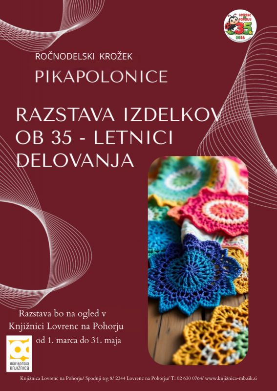 Na razstavi so na ogled izdelki članic ročnodelskega krožka Pikapolonice, ki s svojo ustvarjalnostjo, natančnostjo in ljubeznijo do ročnih del že vrsto let bogatijo kulturno življenje v kraju. Razstava je pripravljena ob 35-letnici delovanja krožka in predstavlja priložnost za pogled nazaj ter... več
