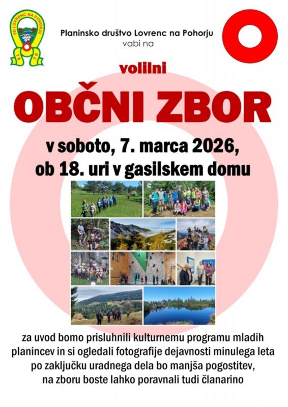Planinsko društvo Lovrenc vabi v soboto, 7. marca, ob 18. uri v gasilski dom na redni občni zbor.