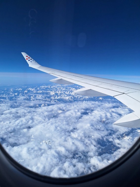 Nekatere so prvič letele z letalom. Čudoviti pogled na Alpe. Pod nami je Salzburg.