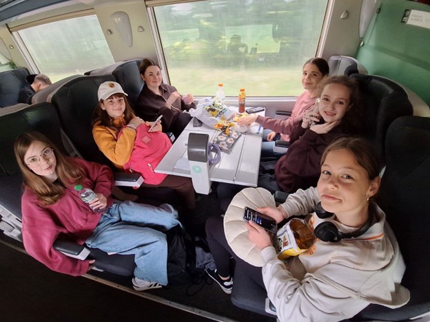 Tokrat so šle na pot same punce. Šest deklet je izdelalo svoje predstavitve in jih poslalo prijateljem v Issoudun. Takoj so se povezali in začeli klepetati po telefonih, video klicih. Komaj so čakale, da gremo na pot. Izdelale so PP predstavitve o Sloveniji, Lovrencu in naši šoli. V angleščini so jih predstavile francoskim učencem. Tudi Francoze je navdušila naša zelena lovrenška kotlina.
