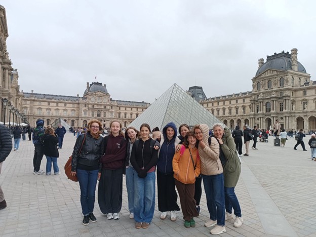 Najboljše pa nas je šele čakalo. Vse smo komaj čakale Pariz. Ker je znamenitosti toliko, da si jih peš ne moreš ogledati v enem dnevu, smo si ga najprej ogledale z nadstropnega avtobusa. Vse dni smo imele 27-28 stopinj celzija. Paris pa nas je priačakal s 13 stopinj in plohami. Pravijo, da je pač takšno pariško vreme »comme si comme ça«. Nas ni preveč motilo, čeprav nas je veter skoraj odpihnil z nadstropja avtobusa. Imamo pa vse super spominek – dežnik.